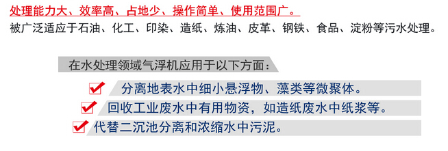溶气气浮装置用于污水处理中的固体和液体的分离或液体和液体的分离,对于污水中的小悬浮物、藻类、絮状物等有良好的处理并效果。